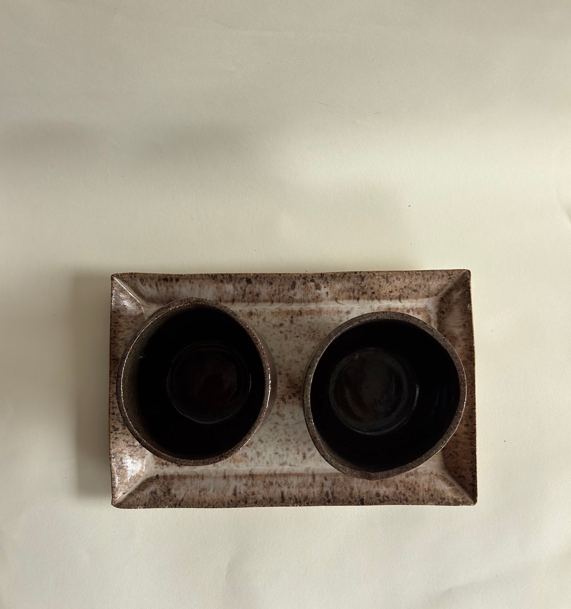 Acabamento do pires com esmalte reativo. O esmalte reativo cria efeitos únicos em cada peça, tornando-as exclusivas. Nenhuma sai igual à outra, sempre com nuances e variações especiais.