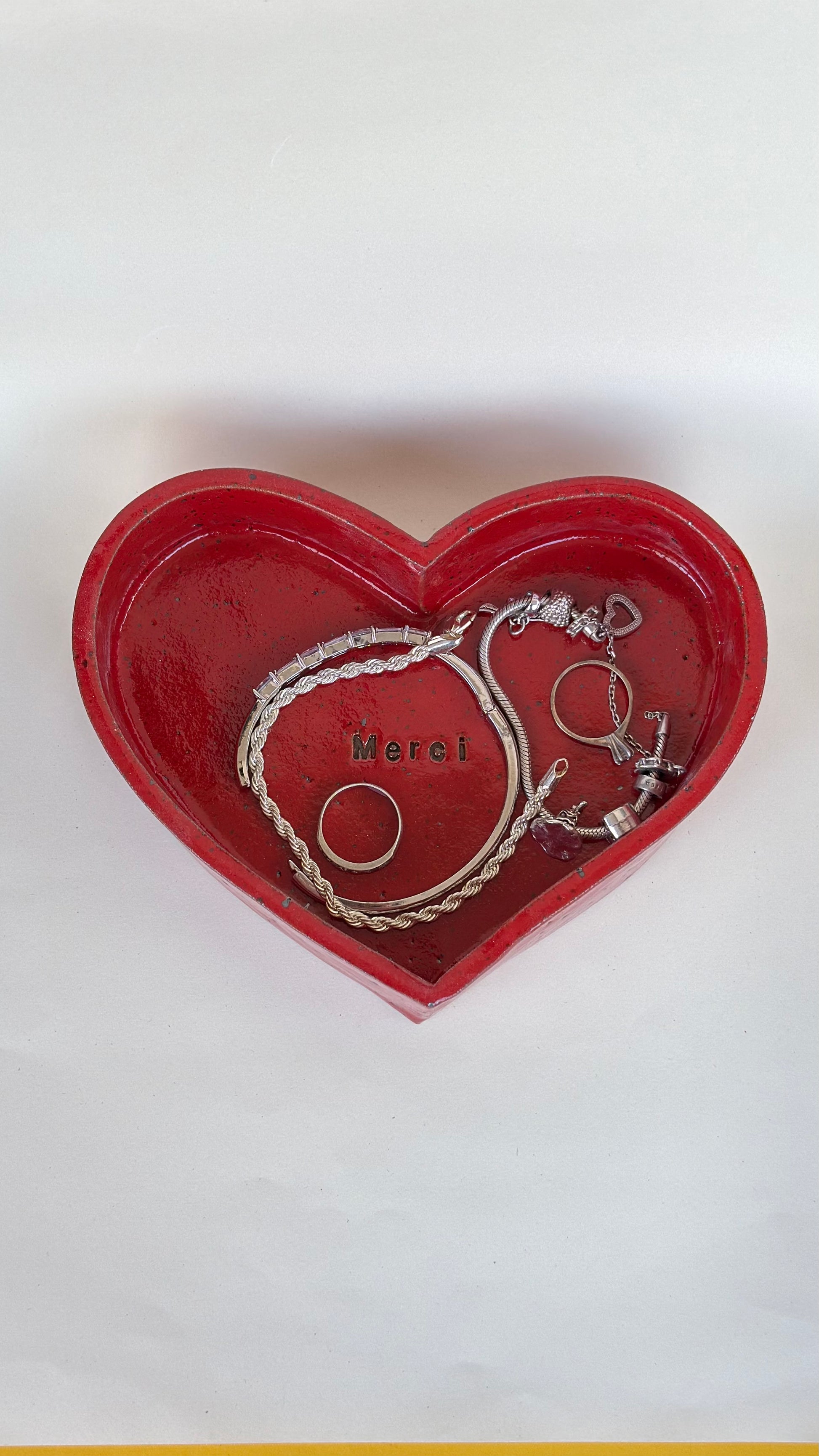 Peça artesanal em cerâmica, delicadamente personalizada com a frase “Merci”. Ideal para guardar joias com charme e sofisticação, unindo funcionalidade e um toque especial de elegância à decoração.